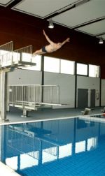 Wie graag vanuit de hoogte het water in wil duiken, zal veel plezier beleven door van de 3 m hoge springtoren of van de 1 m hoge springplank te springen.
